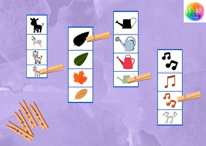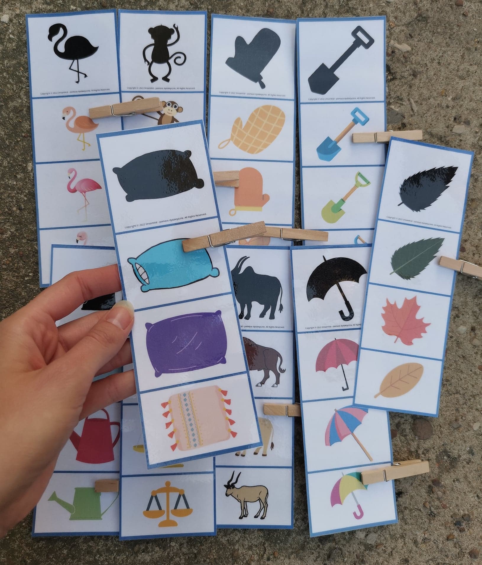 Klamerkowe - zaznacz obrazek pasujący do cienia.