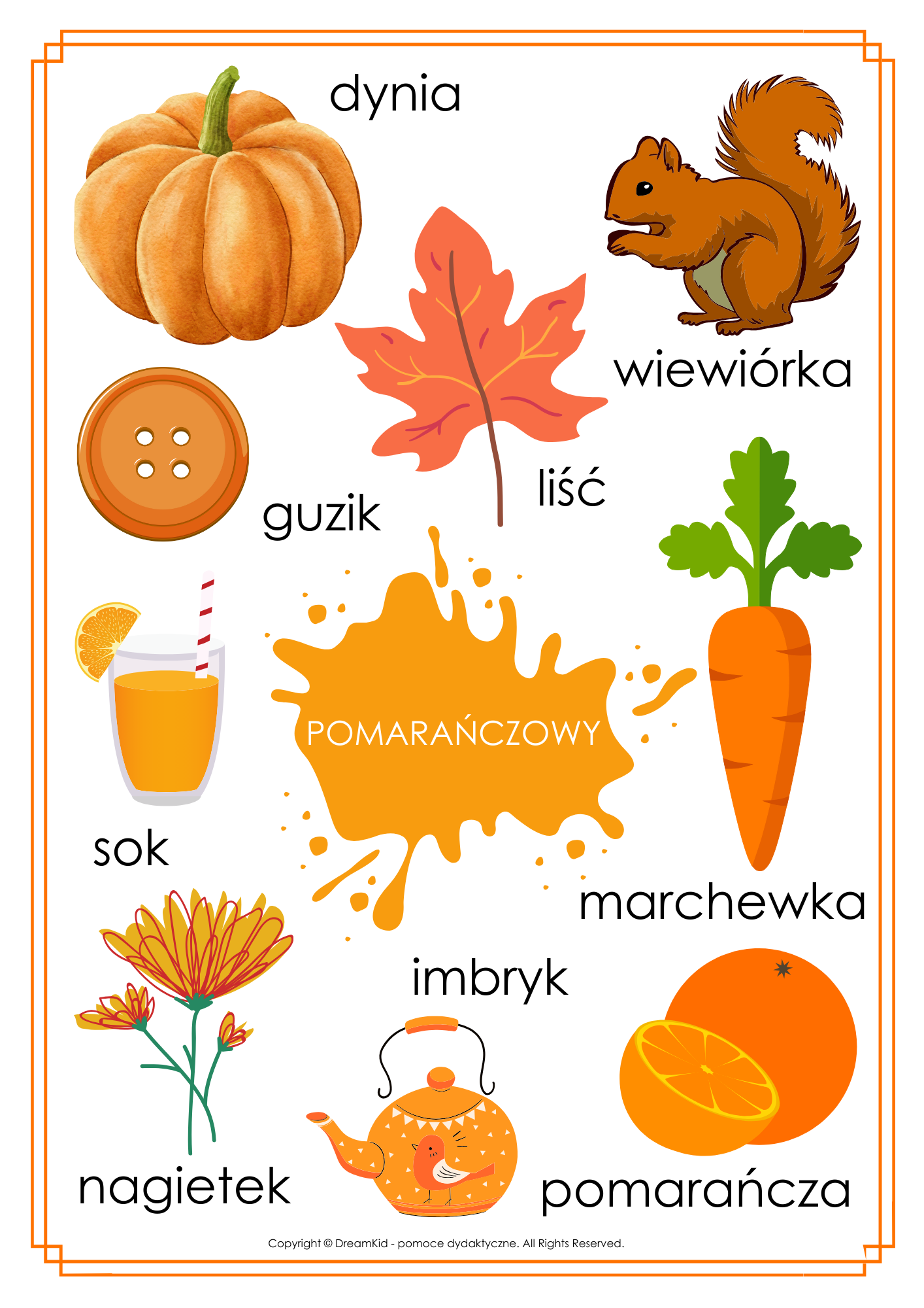 Zestaw zawiera 12 plansze A4. Wesołe kolory w zabawny sposób uczą dzieci kolorów.